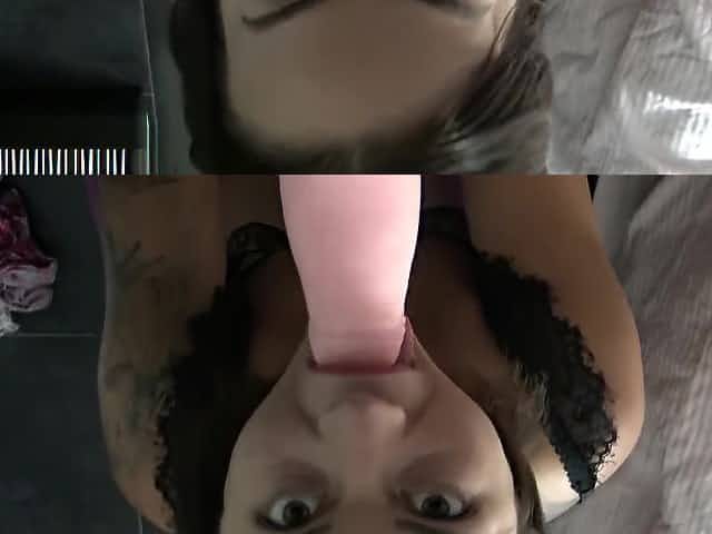 Couverte de sperme, cette jeune brune suce et se prend un grosse faciale
