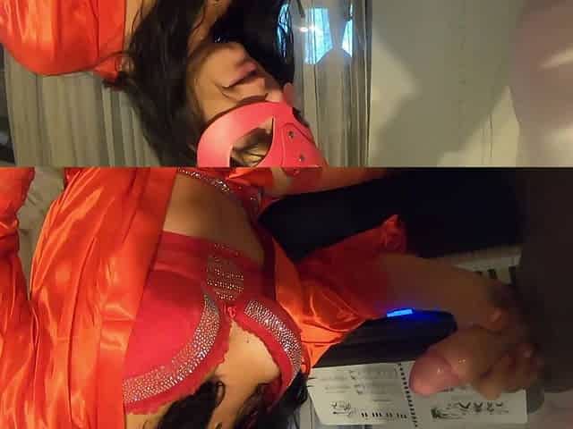 Je le suce en étant baisée par la fuck machine