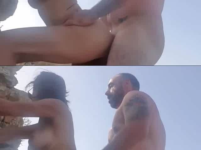 il me fourre la chatte vite fait contre un rocher