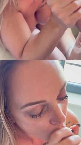 My Wife Blowjob and cum on tits (cuckold)