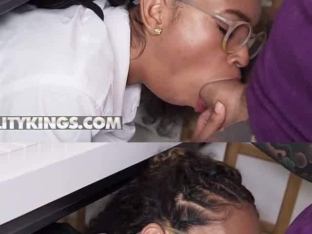 Brunette hair Secretary Miley Ann Bangs Her Way to a Promotion