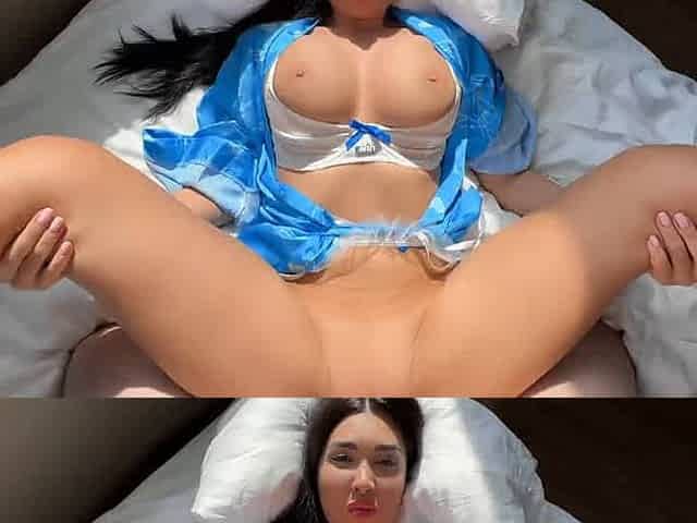 Solo blond cutie Iris is rubbing her hairless vagina,in VR