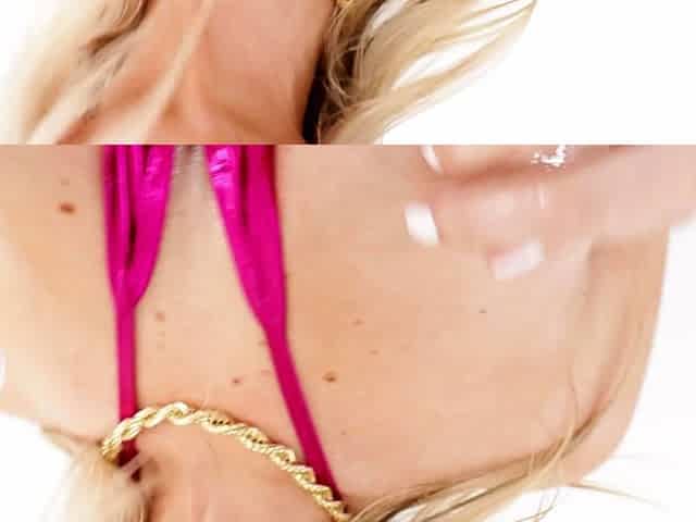 Pale Topless Blonde Sucking Suction Cup Dildo