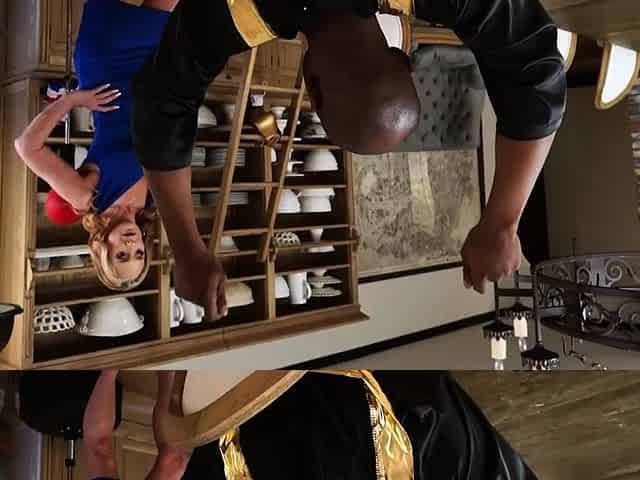 Blonde wife in lingerie takes massive BBC on dining table