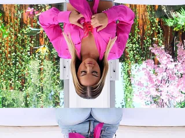 wife rides a giant rod looking back in the mirror - pov - underware -