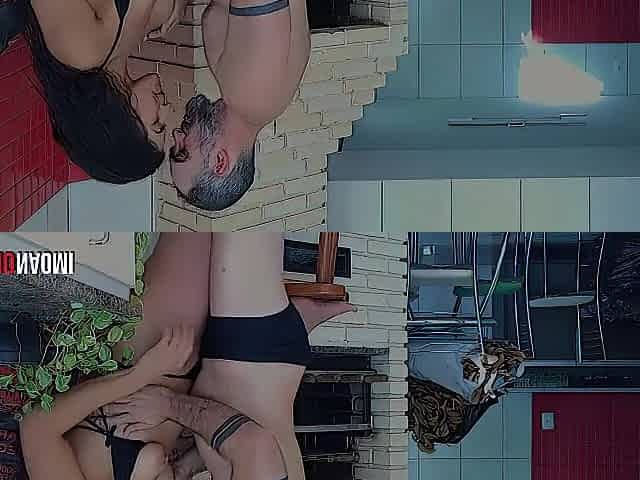 I meet the babysitter in the kitchen and we fuck while my wife is in the room