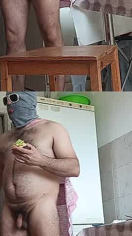 Amateur Couple Having Fun in the Kitchen. Sexy Wife Workout at Home Naked.
