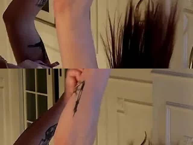 Homemade close up video of a tattooed brunette having fun