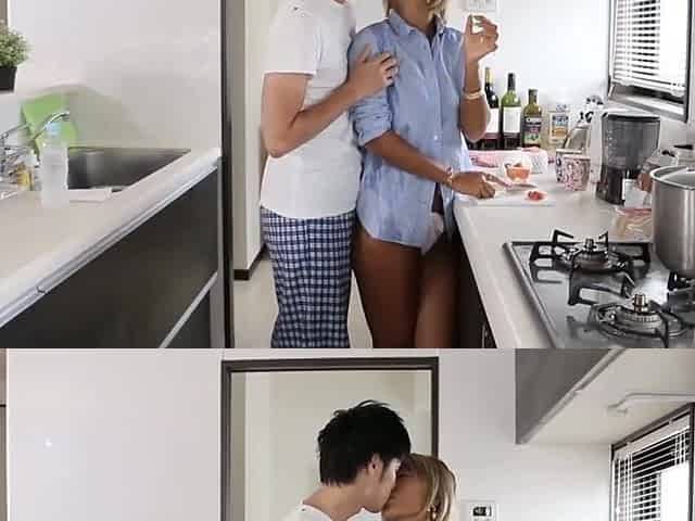 CFNM fun in the kitchen with cum loving Candy Banks and friends