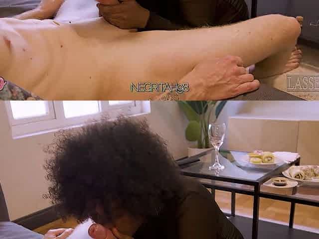Horny BBW having fun while sucking a big black cock - Mona Azar