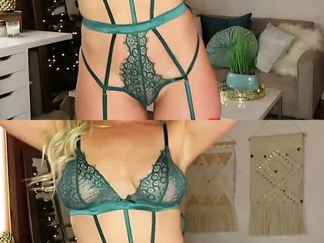 Blonde Sarah Vandella with big tits wearing lingerie having fun