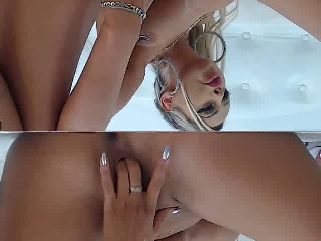 Blonde tight pussy babe solo toy fun in glamour masturbation