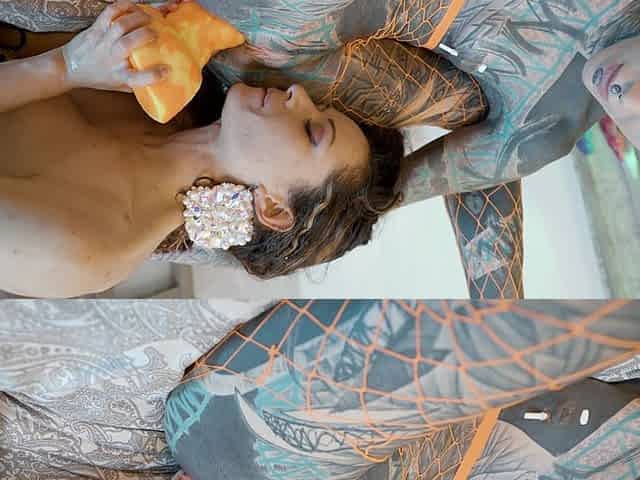 Heavily Tattooed Anuskatzz and Stacy Bloom Lesbian Fisting Fun in the Bedroom.