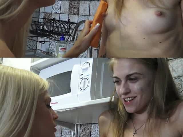 Blondies Have Sex Fun with Vegetables and Fruits in Kitchen