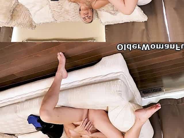 Passionate Lesbians With Sex Toys Have Fun On The Sofa