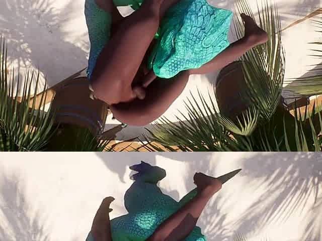 Lara Croft enjoys outdoor fun on the beach with a monster cock