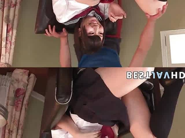 "Awesome Japanese school-girl with slick cooch gets creampied during class by her professor and made to gargle his"