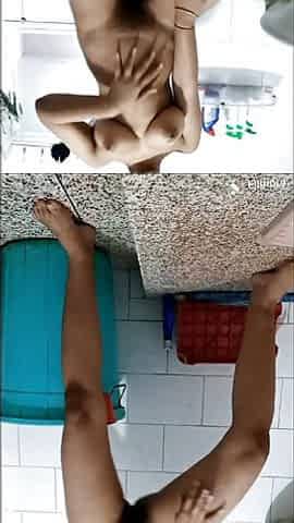 "fun Indian Desi girl in bathroom "