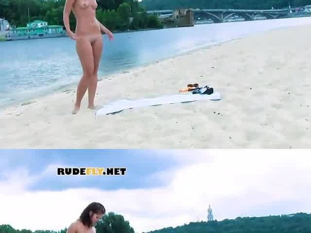 Playful Young Nudist With Nice Body Is Having Fun The Beach