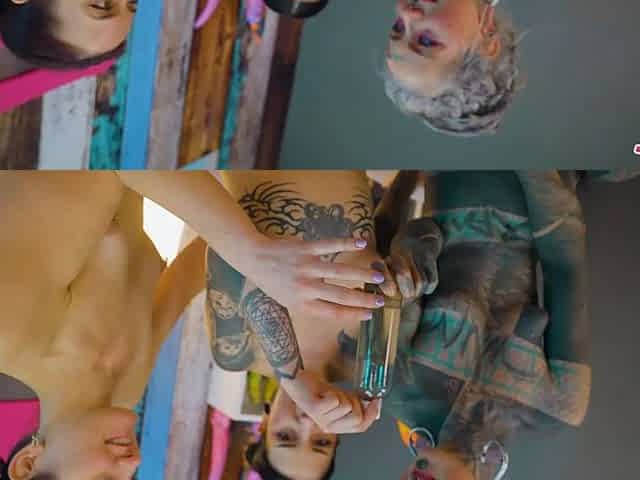 Threesome Oily Fetish Lesbian Fun Metal Toy