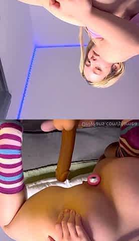Blonde tight pussy babe solo toy fun in glamour masturbation
