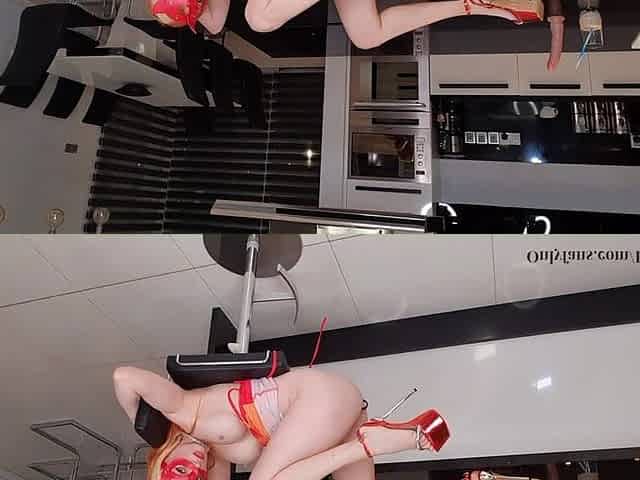 Super Long Legs, High Heels. Laony Has Fun with a Dildo on a High Chair.