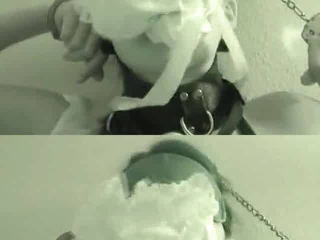 Busty sex slave brunette gets a toy shoved in her by a horny mistress