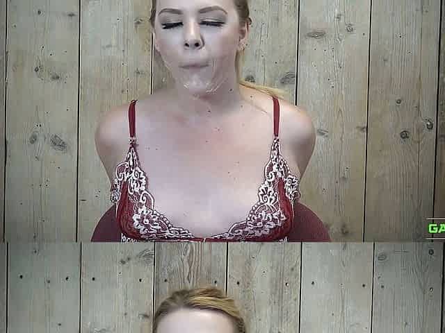 Sci-fi BDSM! Red haired hot gagged girl in cuffs gets fucked hard by a midget man