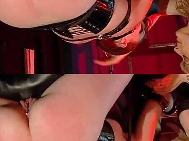 Randy chick roughed up by slut in latex