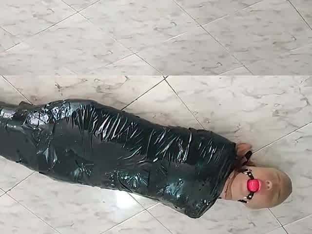 Tape Mummified Girl Pantyhose Hooded And Ball Gagged