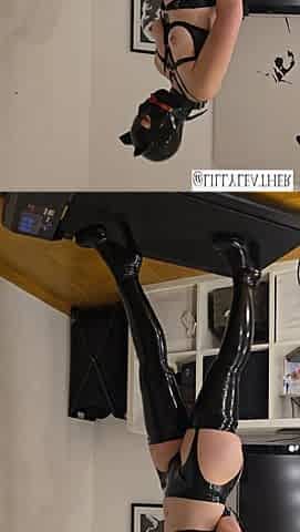 Latex Girl Is Running and Walking in High Heels on Readmill! to Make It Not Too Easy I Am Bound Masked and Gagged!