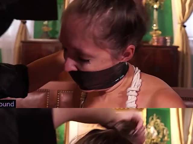 Gagged honey is about to get fastened up and tortured, 'cuz it excites her a lot