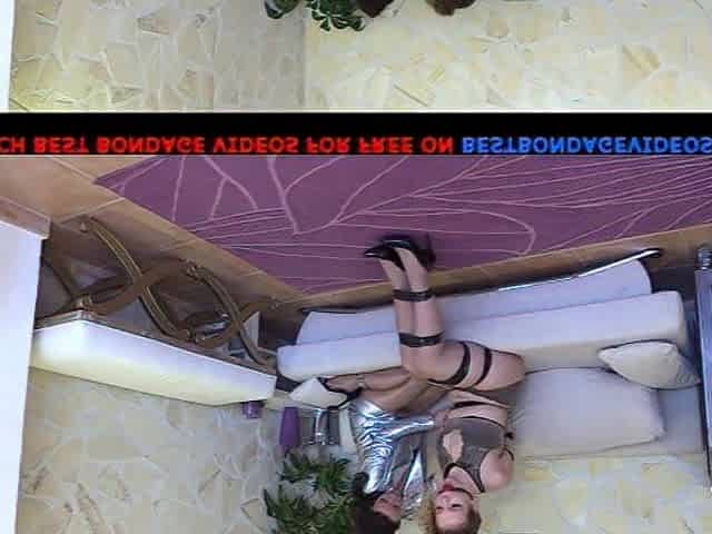 Girl Bound in Ropes and Duct Tape Wrap Gagged Bondage