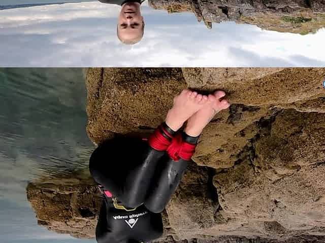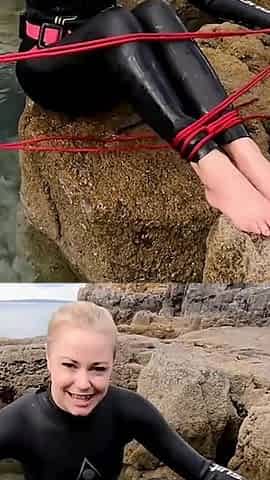 Ocean Rope Bondage with Ballgag in Wetsuit
