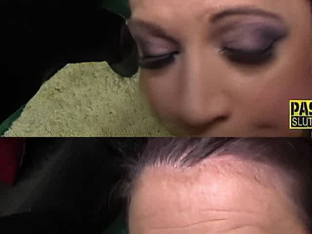 Darkhair gets facials in public shop