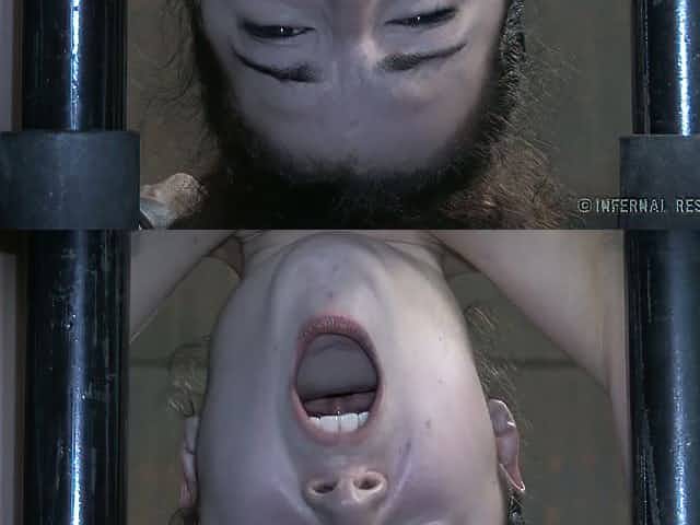 Crucified gagged redhead Barbary Rose gets tied up and masturbated