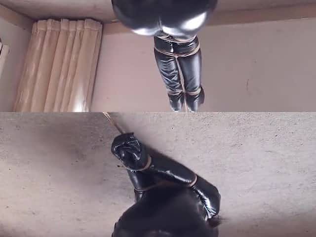 chinese CLEAR TAPE OVER BALL GAGGED IN CATSUIT
