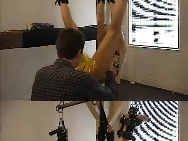 Black bitch suffering different suspensions and banged and gagged with jock on a stick