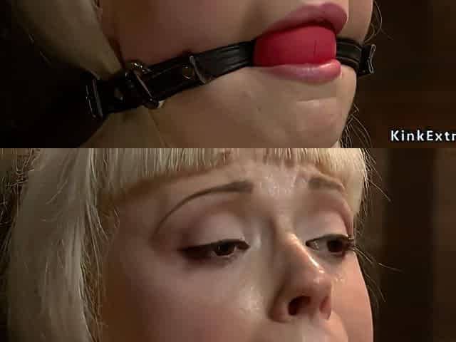 Gagged Blonde In Hogtie Is Toyed