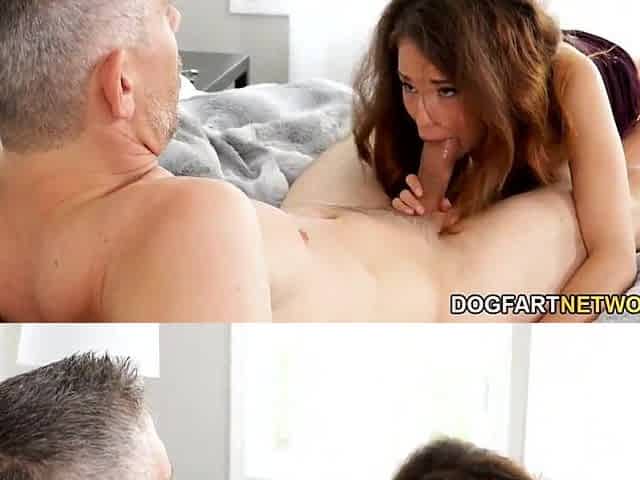 Hawt slender teen likes licking a mans butt and sucking large white shlong