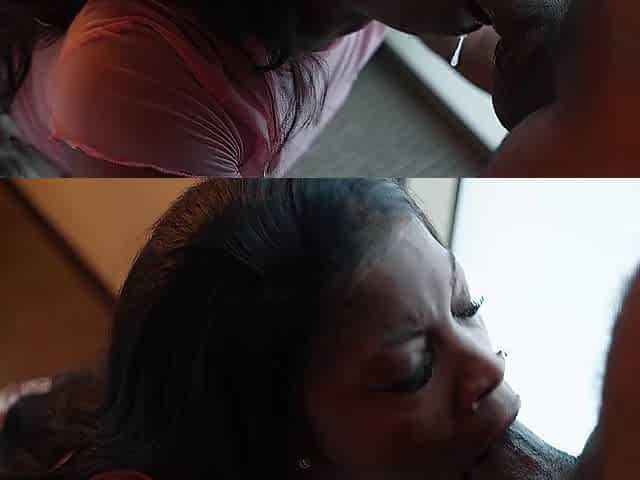 Hot babe gags on a huge cock then gets fucked to a tits cumshot