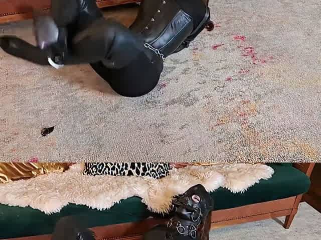 Bound Latexslut silenced and riding the vibrating toy