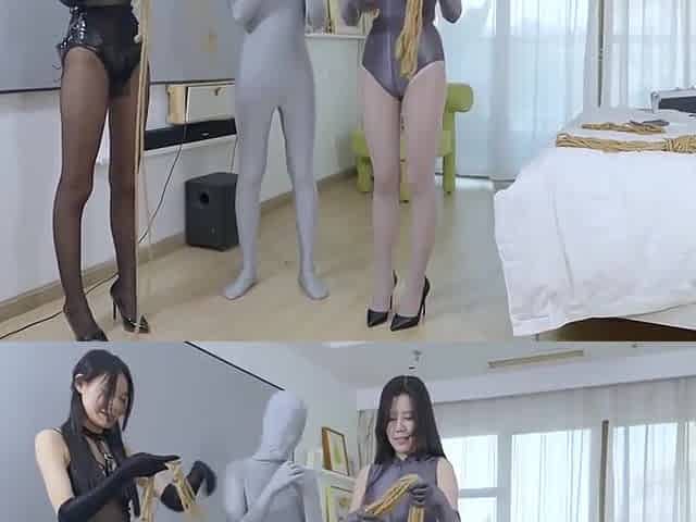 Slender Gagged Ebony Slave In Rope Bondage With Ana Foxxx