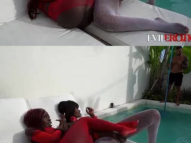 2 Large Ass Black Sweethearts Screw The Pool Dude - UNMERCIFUL EROTIC