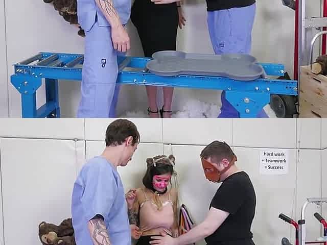 "Mouth fucked submissive in BDSM threesome"
