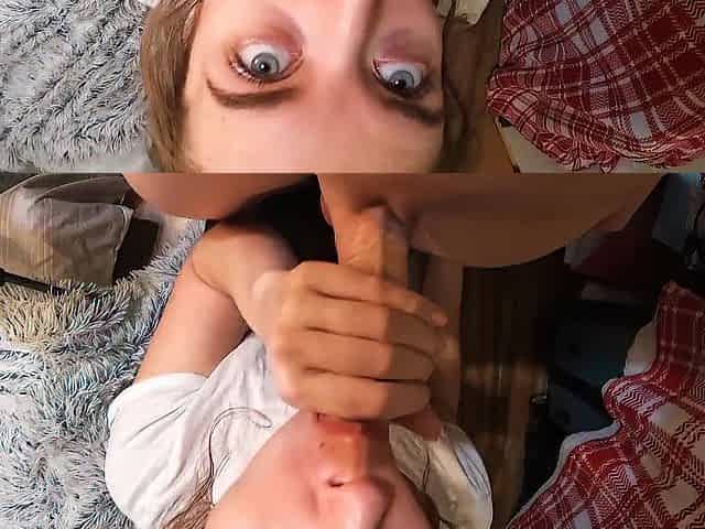 Girly's Throat Gags on My Cock - Amateur Deep Throat
