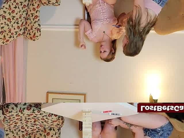 Three hot lesbians play a Jenga Draw striptease game