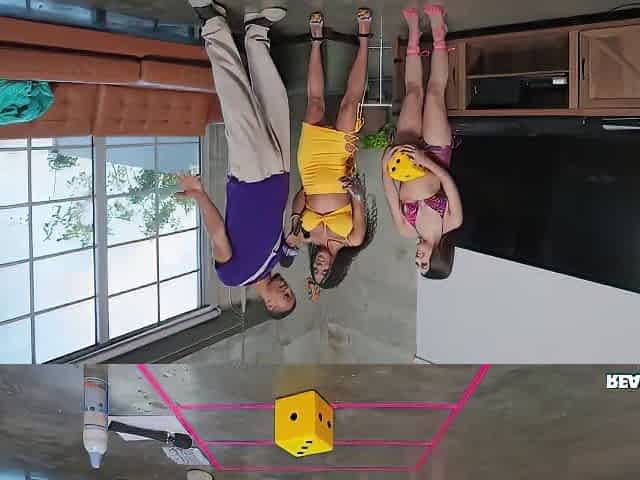 A strip twister game with sexy lesbians and one big sex toy