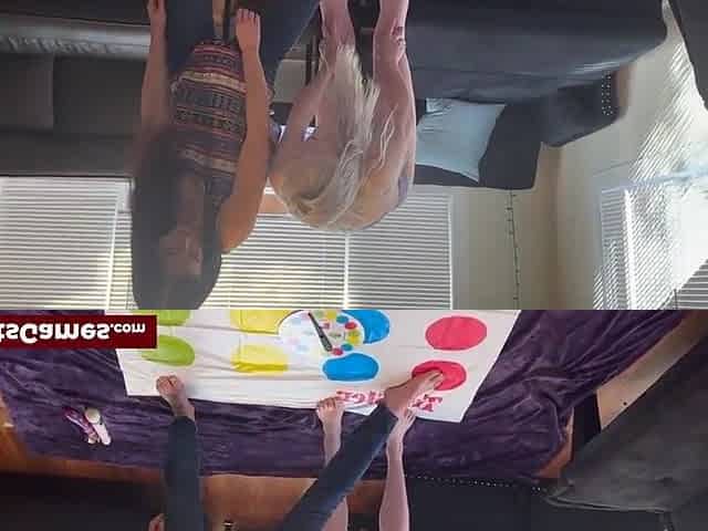 Two sexy friend getting naked while playing a strip twister game