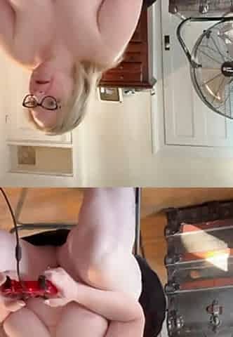 Horny gamer girl with big tits and booty jerks off on camera with adult toy while streaming anime
